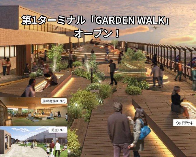 屋外の展望デッキ「GARDEN WALK」では、足湯、芝生とキッズエリア、写真が撮りやすいワイヤーフェンスなどが整い、空港を“出発前に過ごす場所”としてだけでなく、“滞在して楽しむ場所”として感じられる空間が広がっています。